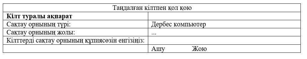 ЭЦҚ-ны сақтау жолын таңдау, кілттерді сақтау орнының құпиясөзін енгізу.