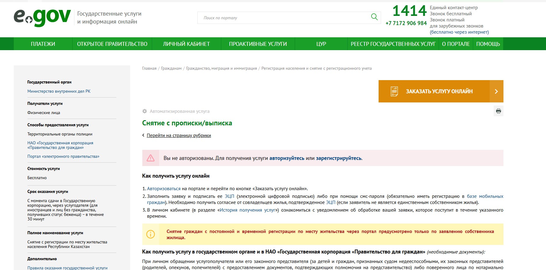 Обратите внимание, первоначально для получения данного документа собственнику жилья необходимо зайти на портал eGov.kz, затем выбрать функцию «Услуги», далее в разделе услуг открыть объект «Гражданство, Миграция и Иммиграция» и из отображенного списка выбрать «Снятие с регистрации по месту жительства населения Республики Казахстан» (в крайней правой колонке). В результате вы перейдете на следующую страницу, где нужно выбрать в правом верхнем углу функцию «Заказать Услугу онлайн». При помощи электронно-цифровой подписи подтвердить запрос. Следующим шагом будет выбор «области» и «адреса». В результате получите адресную справку, к которой прилагается список «Зарегистрированных физических лиц» по выбранному объекту недвижимости. Достаточно приложить скриншот с окна Личного кабинета где отображается список «Зарегистрированных физических лиц» по выбранному объекту недвижимости.