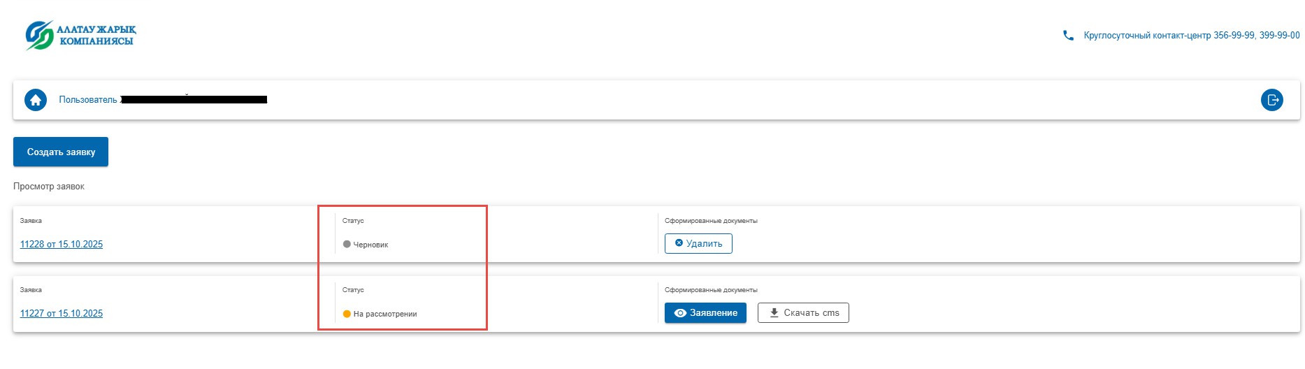 Созданная заявка поступает на рассмотрение работникам Филиал АО «Алатау Жарық Компаниясы» - «ЭнергоСбыт».