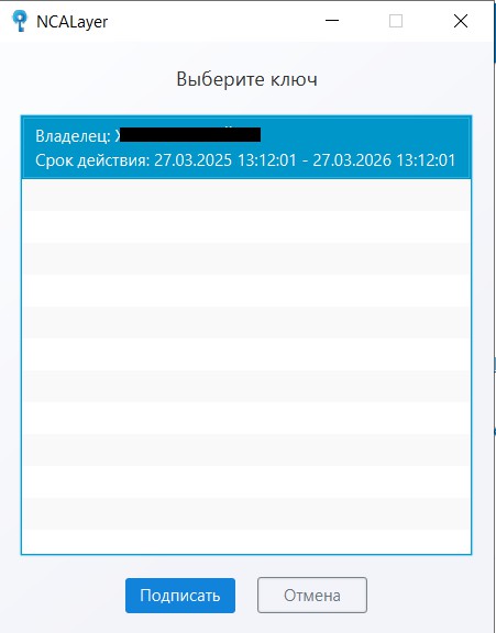 На данной странице для загрузки ЭЦП необходимо нажать кнопку «Подписать» (Рис.14). Выбрать путь хранения ЭЦП, ввести пароль на хранилище ключей.