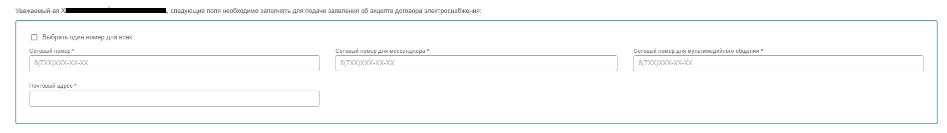 Для подачи заявления об акцепте договора электроснабжения необходимо заполнить поля (Рис 6):