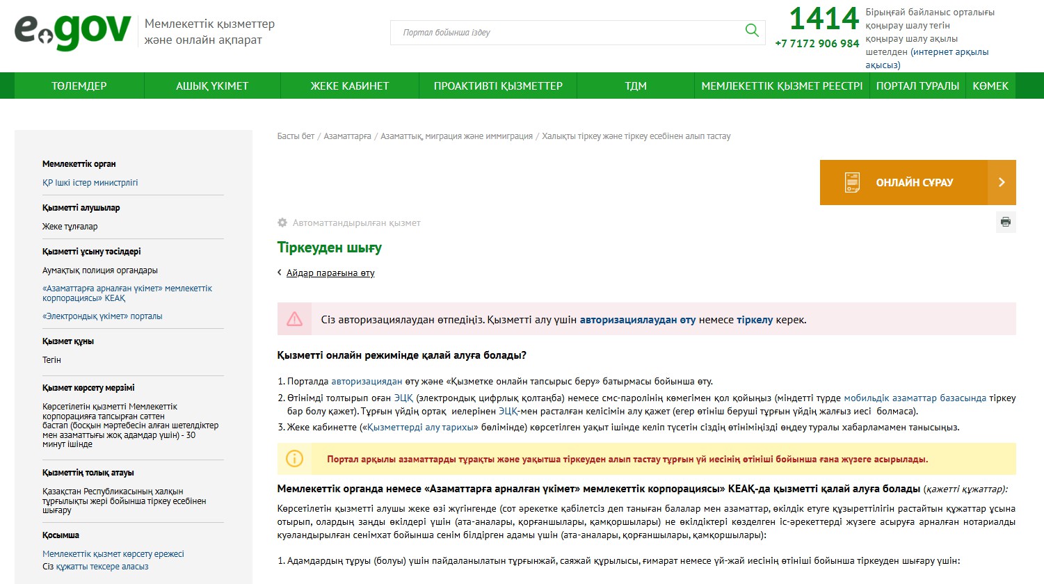 В) жоғарғы оң жақ бұрышында «Онлайн сұрау» сілтемесін таңдау керек.