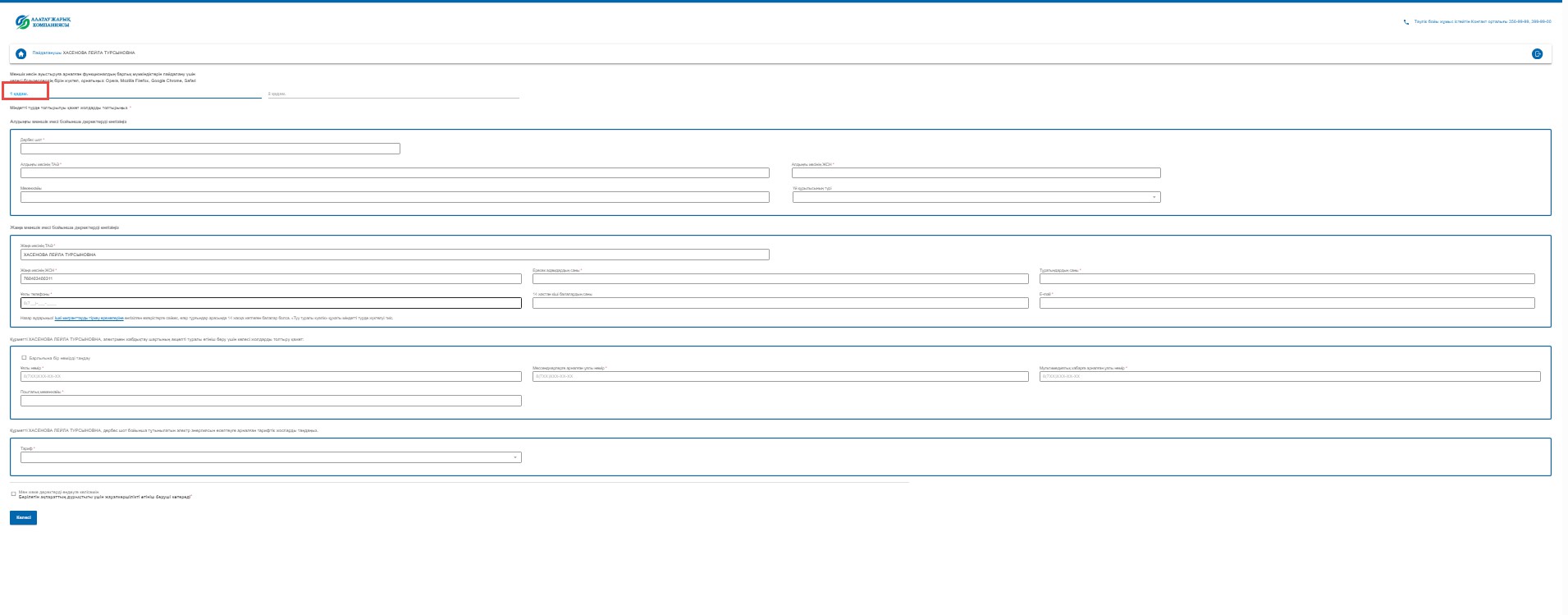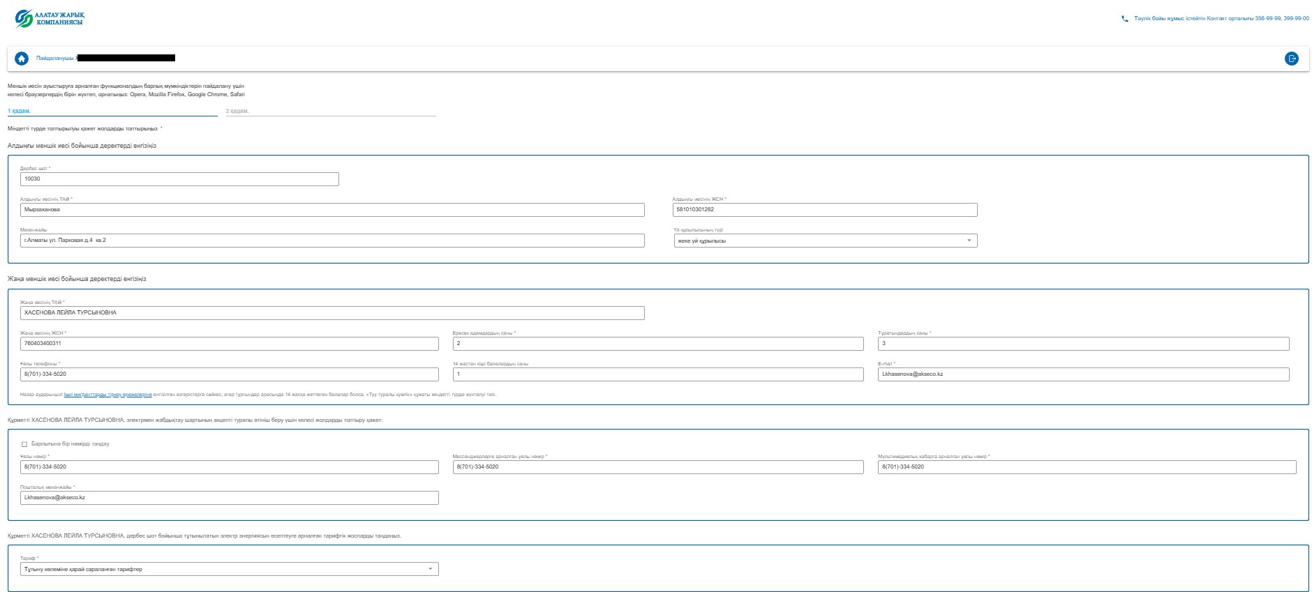 Жасалған өтінім «Алатау Жарық Компаниясы» АҚ Филиалы - «ЭнергоСбыт» қызметкерлерінің қарауына келіп түседі.