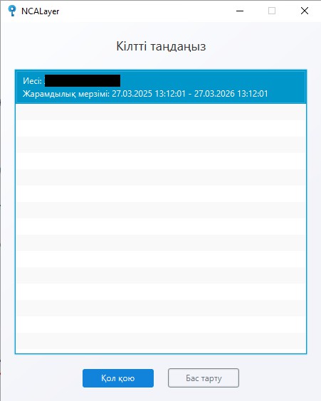 Авторизация кілтін таңдау үшін «Кіру» батырмасын басып, аталған кілтті сақтау жолын таңдау қажет.