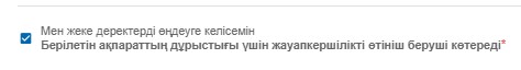 «Дербес деректерді өңдеуге келісемін» чек-боксын таңдау