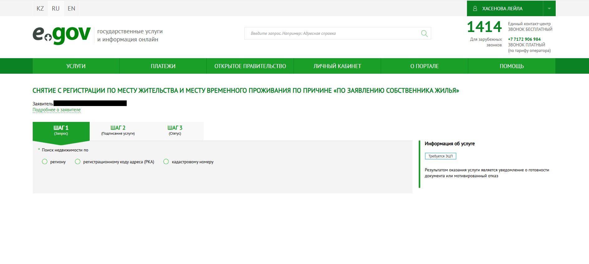 - ФИО и ИИН нового владельца — отображаются по умолчанию ИИН и ФИО владельца из ЭЦП.